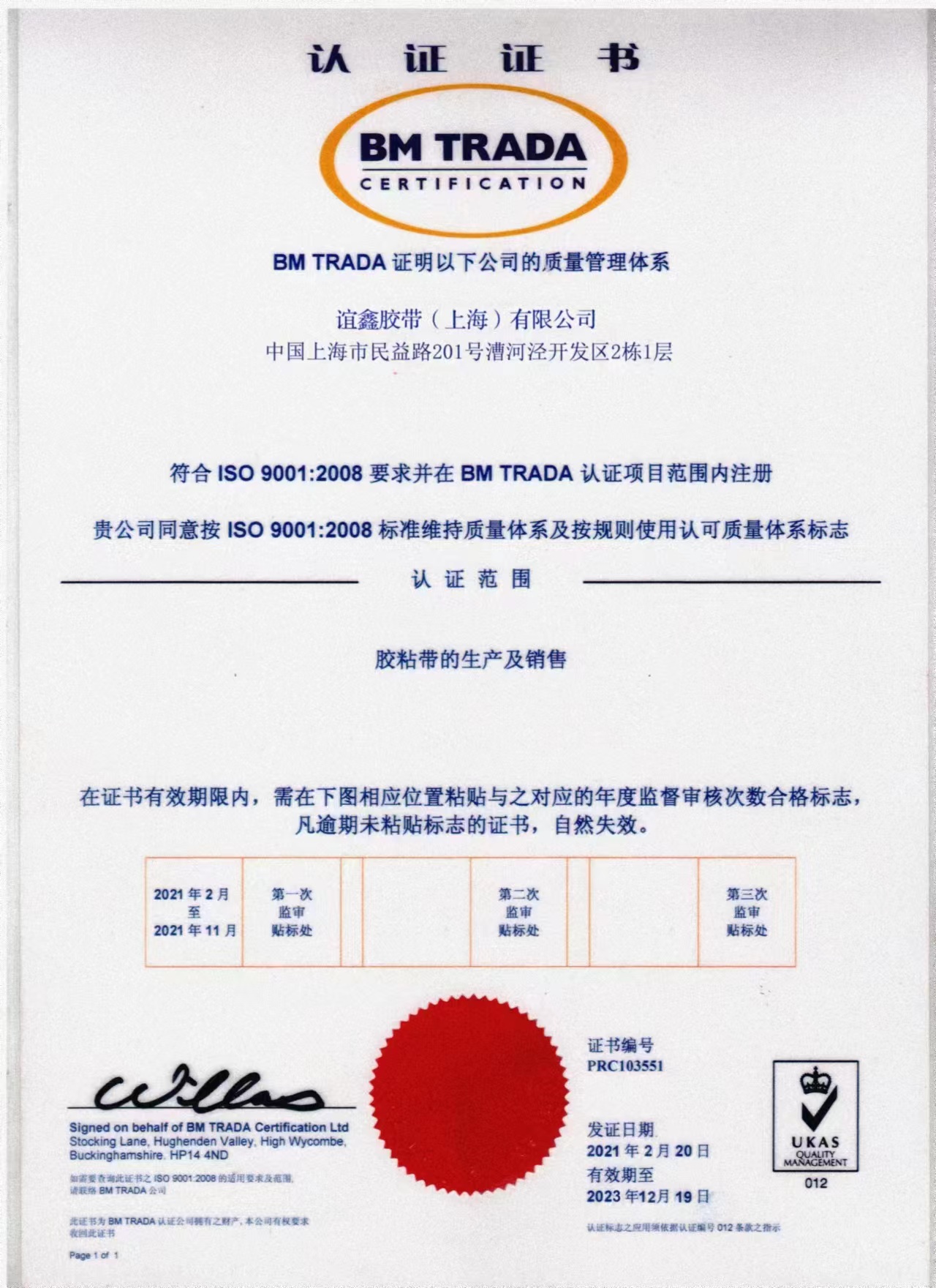 Yixin Tape (Shanghai) Co., Ltd. is basically produced in Bengbu, Anhui. The main body is Anhui Yixin Tape Co., Ltd., which is a high-tech enterprise, a member unit of China Association of Small and Medium Enterprises, and a member unit of China Adhesive and Industrial Adhesive Tape Association. The thermal spraying unit of the China Surface Engineering Association, and the exclusive agent of the industrial tape of the American Mol | Polymer Company in Greater China. The company has more than 20 national patents, and has established close cooperation with many universities and scientific research units for many years. Main products include a full range of high temperature resistant thermal spraying tapes, plasma spraying tapes, PTFE tapes, polyimide tapes, anti-static polyimide tapes, high temperature connecting tapes, various high temperature double-sided tapes, and acid resistant high temperature tapes and other special industrial production adhesive solutions. The company's products mainly replace well-known tapes such as 3M, Tesa, Sigang, Nitto, Permace|, etc., and make certain contributions to the localization of special industrial tapes. Yixin Tape implements a complete modern management system, has a high-quality management and technical team, and continuously introduces advanced production equipment and management concepts, with an annual output of 20 million square meters of various tapes. For the long-term development of the company, the company's requirements for products are green and environmental protection, and the quality is constantly improving. The company is a qualified unit of IS09001: 2008 quality management system certification, and many indicators of its products have passed the relevant certifications of SGS, UL, CTI and EU directives.